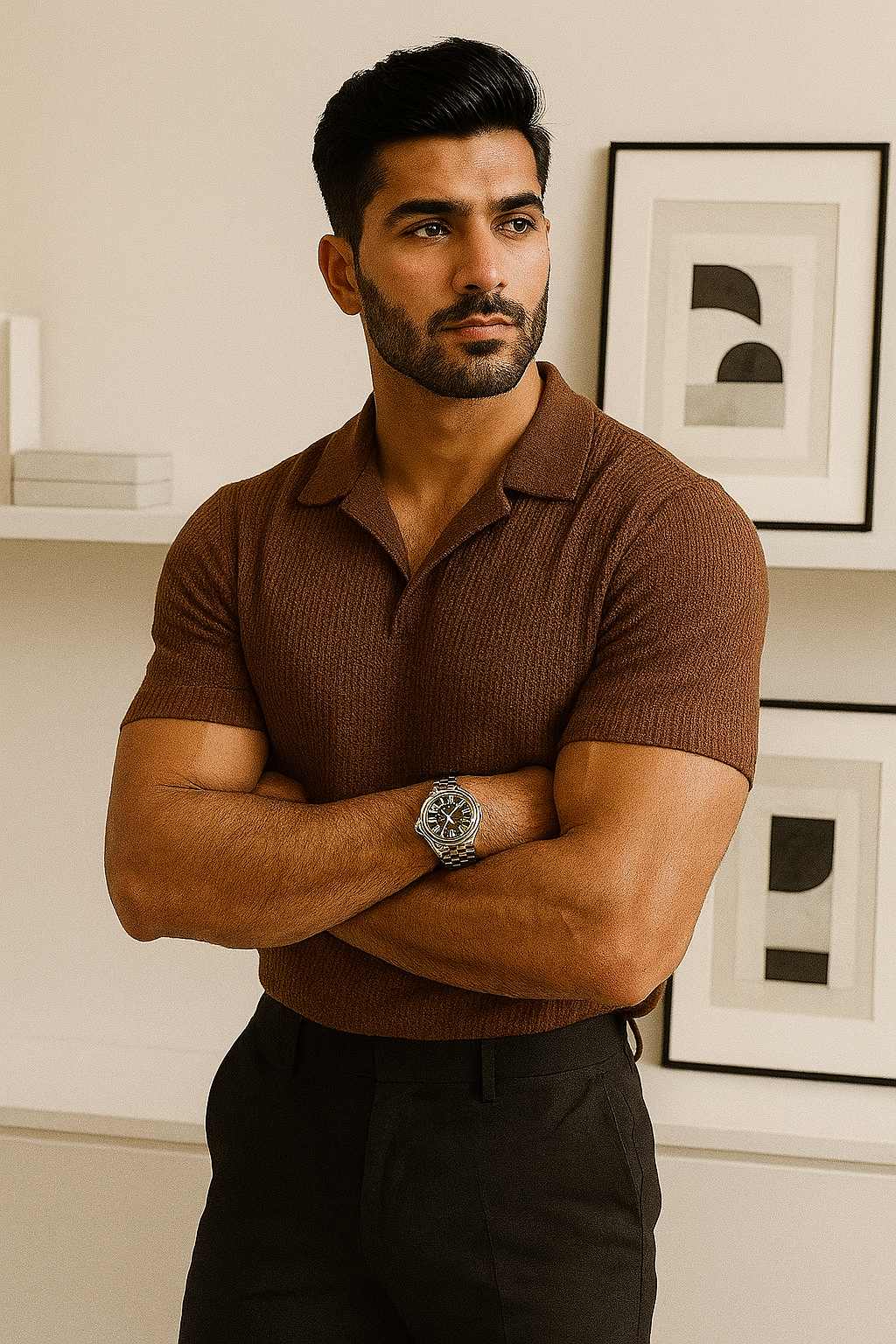 This modern short-sleeve polo T-shirt features a sleek, athletic silhouette crafted from smooth, high-quality fabric
